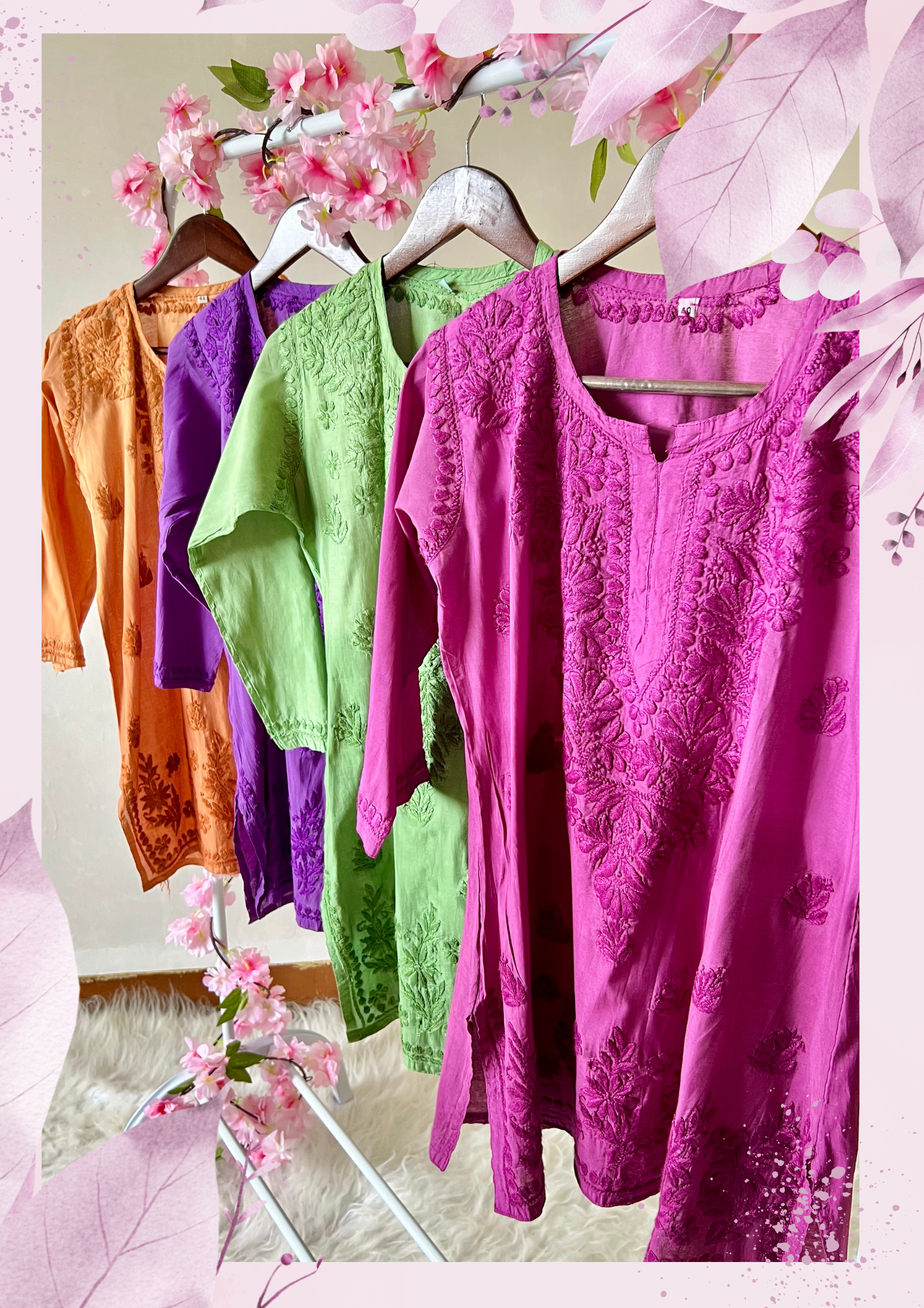 Flaunt your fashion sense with our contemporary Chikankari short Kurtis.