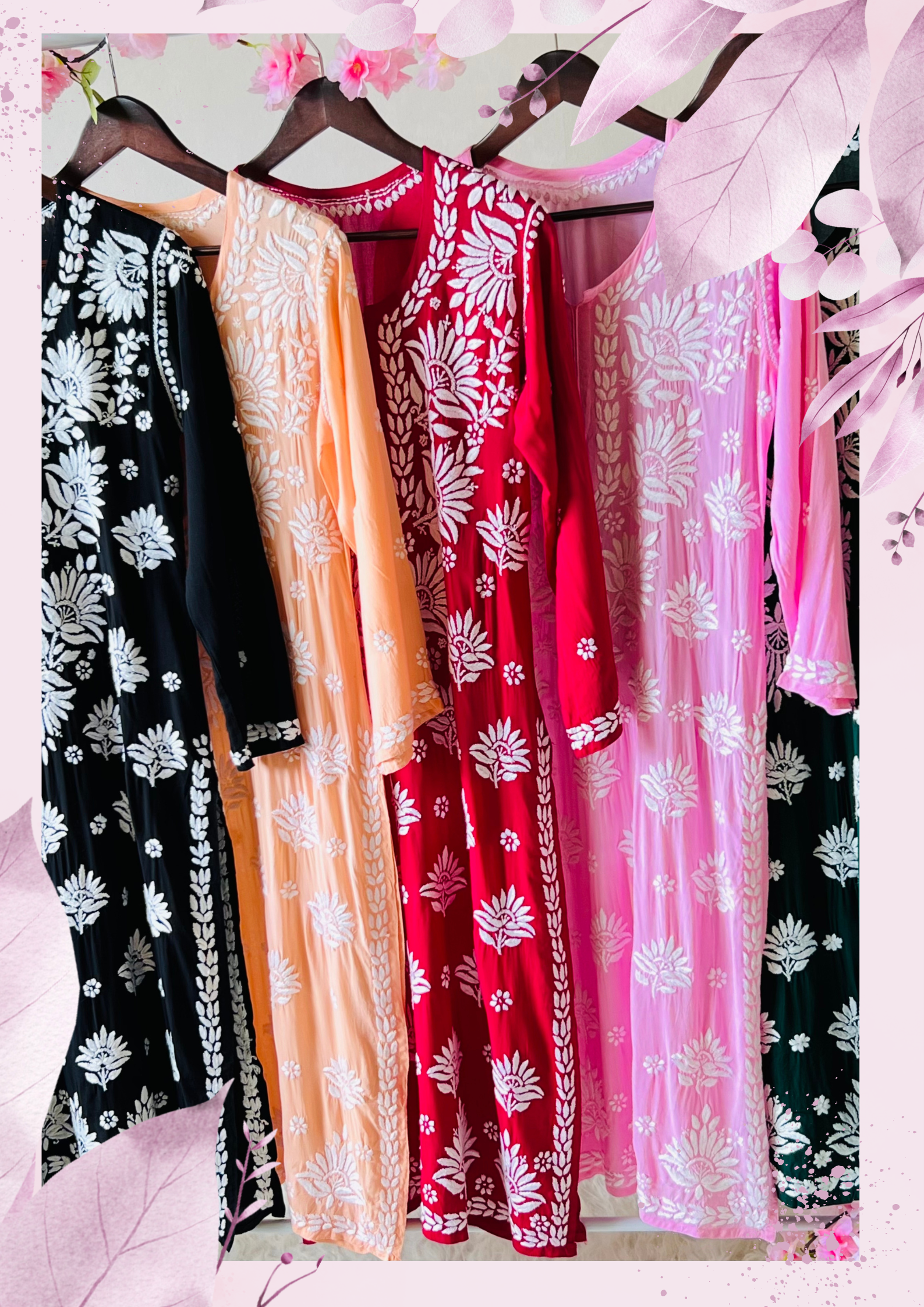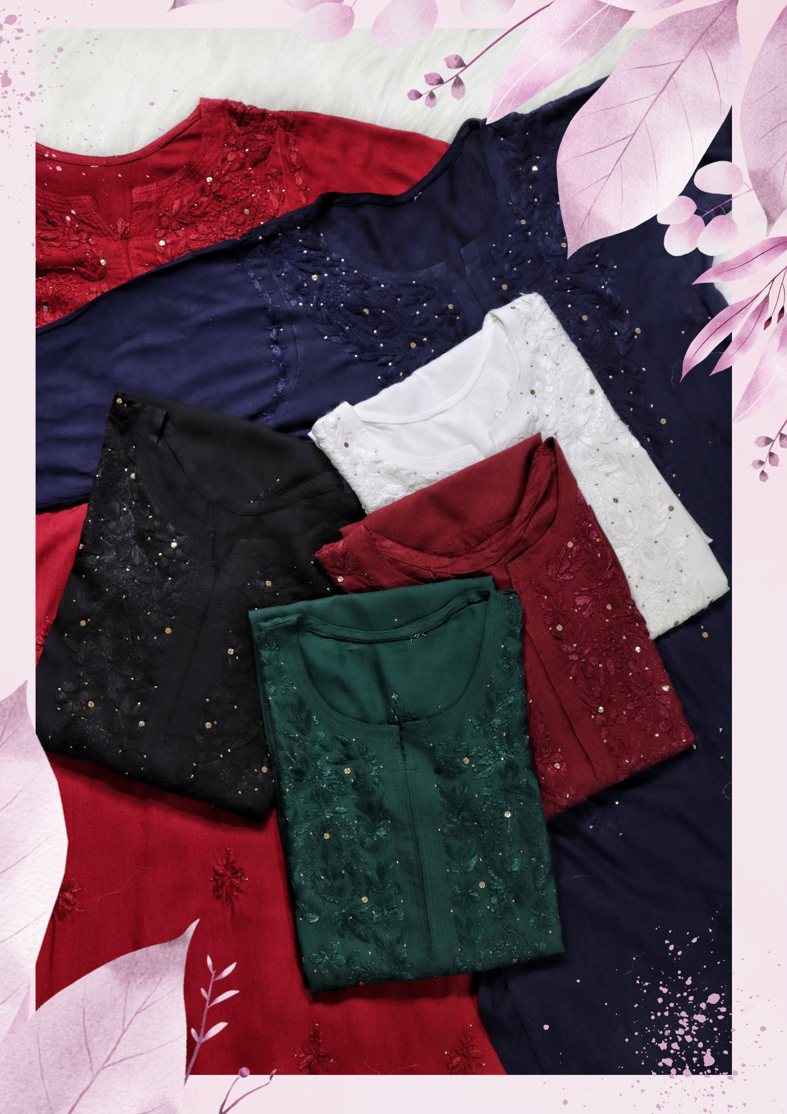 Flaunt your fashion sense with our contemporary Chikankari short Kurtis.